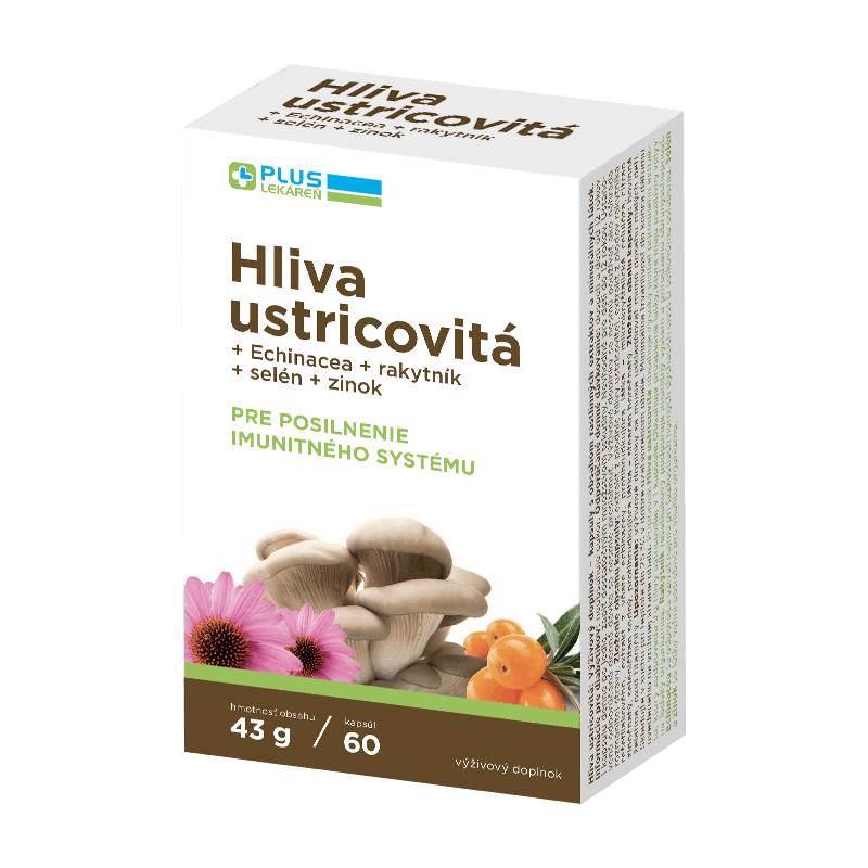 Vyberáme z našej ponukyHliva ustricovitá + Echinacea + rakytník + selén + zinok, 60 cpsPrípravok obsahuje vysoký podiel prírodného extraktu hlivy ustricovitej v 1 kapsule. Rakytník rešetliakový podporuje imunitný systém a prirodzenú obranyschopnosť.Pri kúpe Hliva ustricovitá, 60 cps teraz získate Lišajníkový sirup, 200 ml len za 0,01 €!Výživový doplnok. Výživové doplnky nie sú náhradou pestrej a vyváženej stravy a zdravého životného štýlu.NÁJDETE V PLUS LEKÁRNI