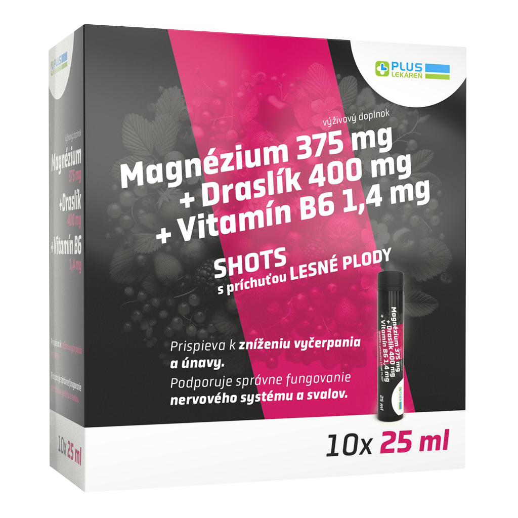 Magnézium + Draslík + Vitamín B6, SHOTS s príchuťou lesné plody, 10× 25 ml